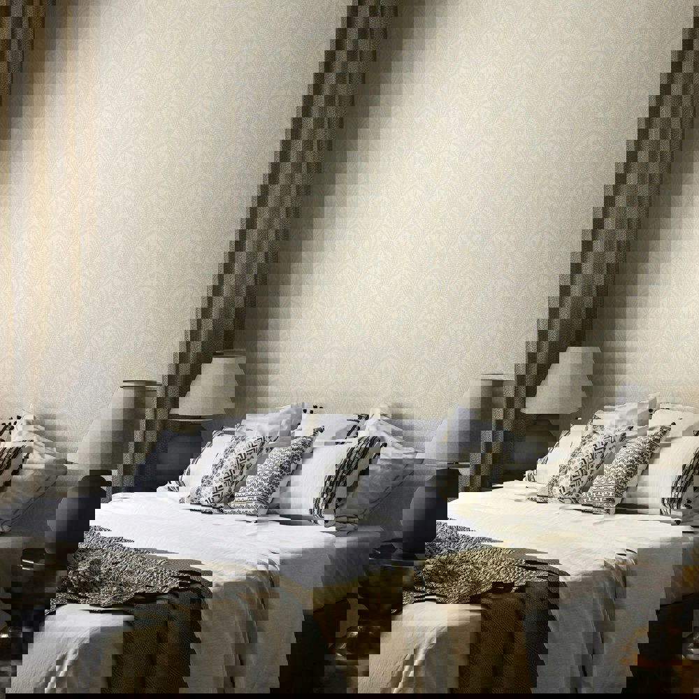 This large-scale fan design with arching circles and intricate natural forms draws inspiration from Classic French archives. Perfect on all four walls or as a feature, the repeating motif creates an elegant flow.