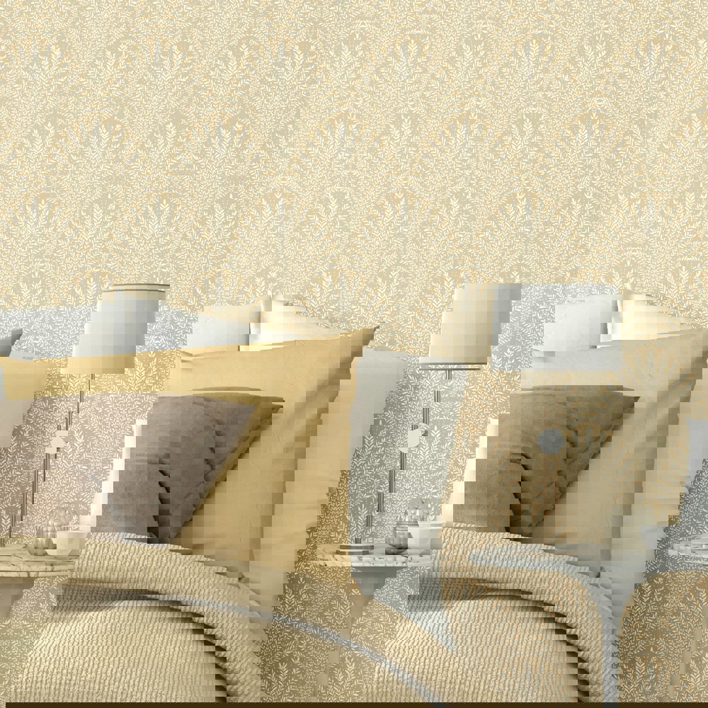 This large-scale fan design with arching circles and intricate natural forms draws inspiration from Classic French archives. Perfect on all four walls or as a feature, the repeating motif creates an elegant flow.