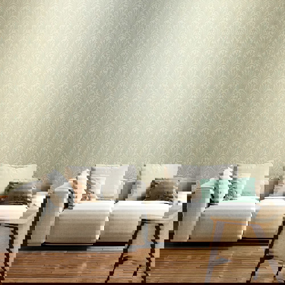 This large-scale fan design with arching circles and intricate natural forms draws inspiration from Classic French archives. Perfect on all four walls or as a feature, the repeating motif creates an elegant flow.