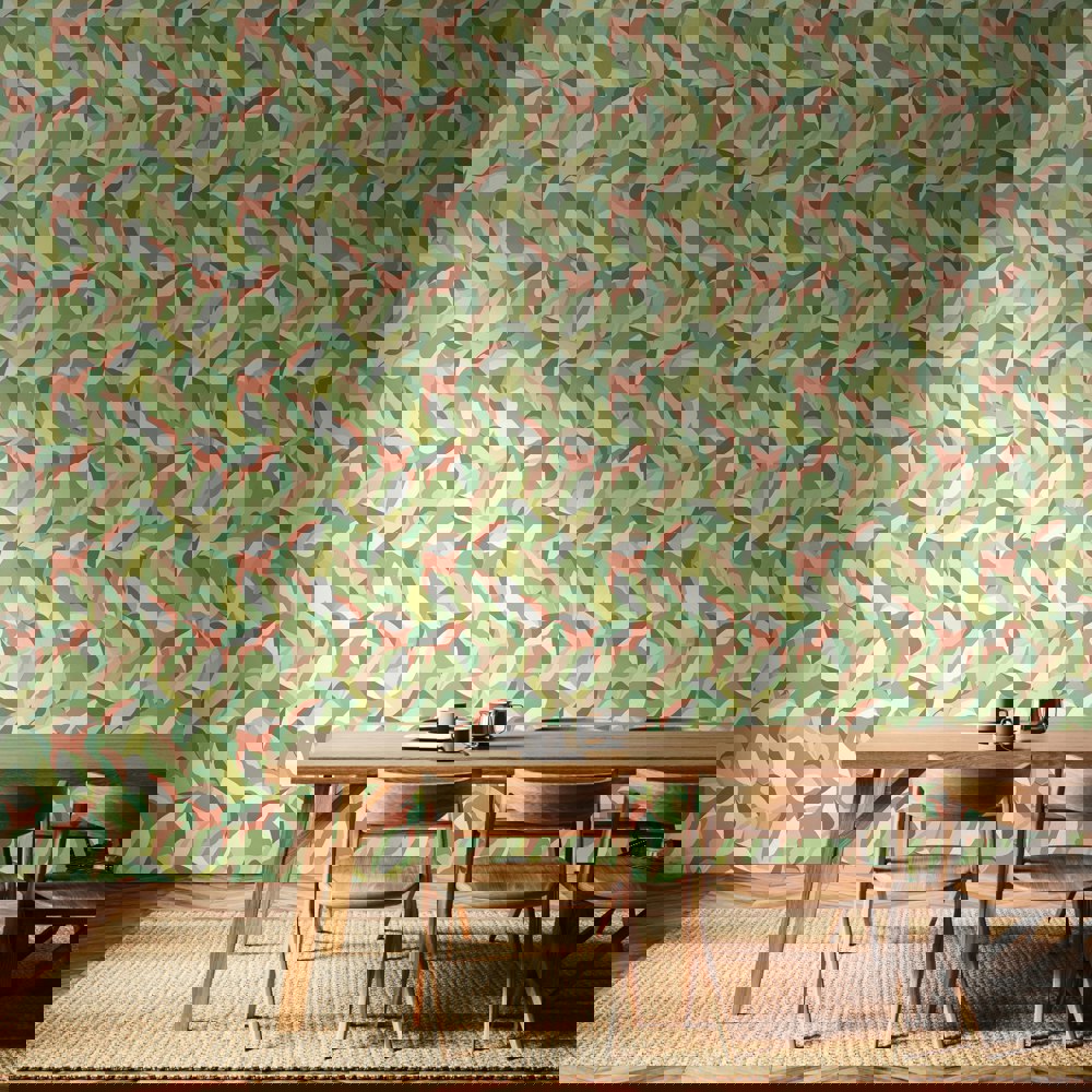 Hoopla Walls Leafy Patchwork - Olive & Blush 10m Wallpaper