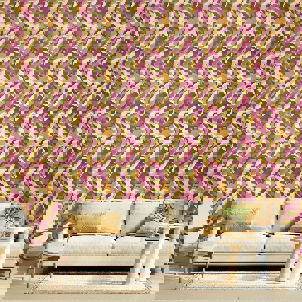 Abstract leaf shapes link together in an all-over patchwork to create a multi coloured design that is bursting with colour and rhythm. A contemporary design that is bound to add depth to any space.
