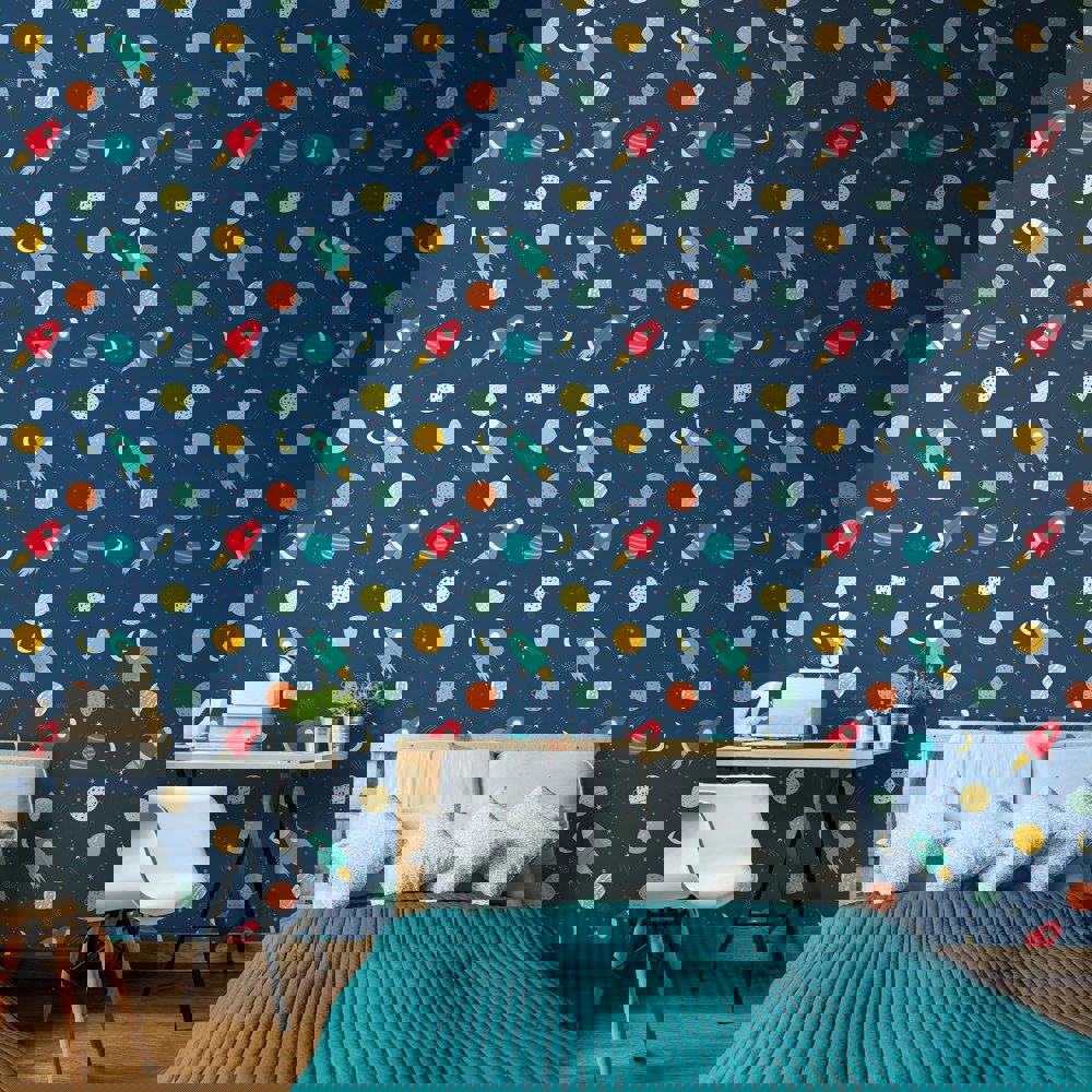 With playful rockets, colourful planets, and twinkling constellations scattered across the design, this wallpaper turns any room into a starry galaxy just waiting to be explored. Designed in a fun, kid-friendly style, Lift Off is perfect for curious minds who love to look up and imagine what’s beyond the clouds.
