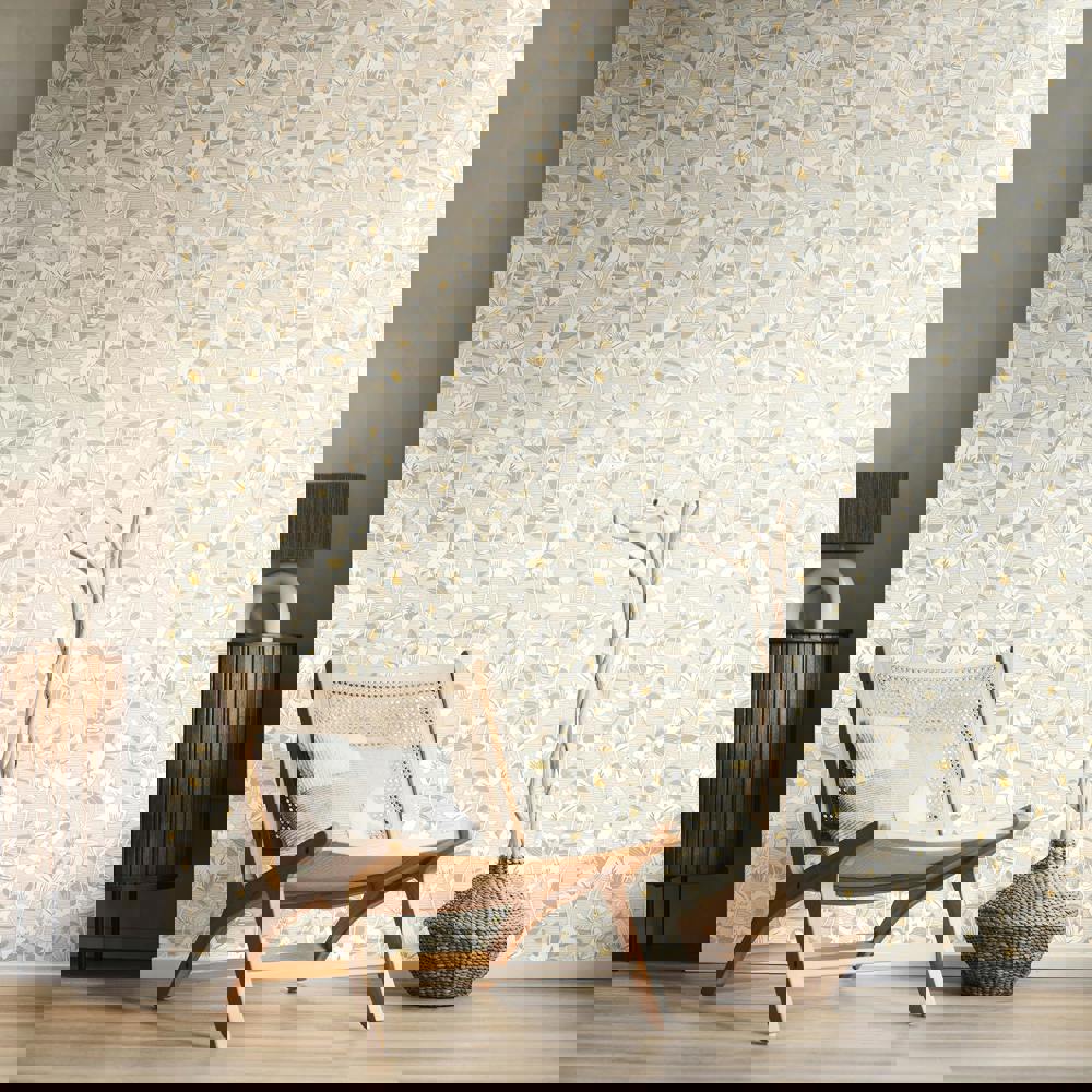 Bring contemporary artistry to your walls with this modern graphic floral design, featuring bold lino-cut style stems and leaves set against an irregular linear ground. The hand-carved aesthetic lends each motif a tactile, crafted character, while the uneven lines in the background add depth and subtle movement.
