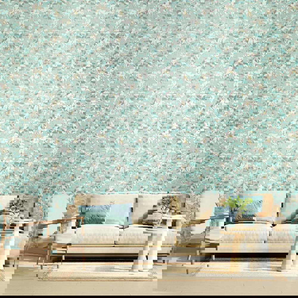 Hoopla Walls Lino Leaves - Duck Egg 10m Wallpaper