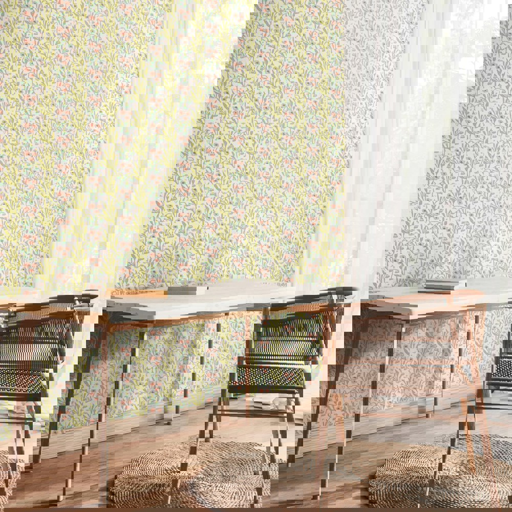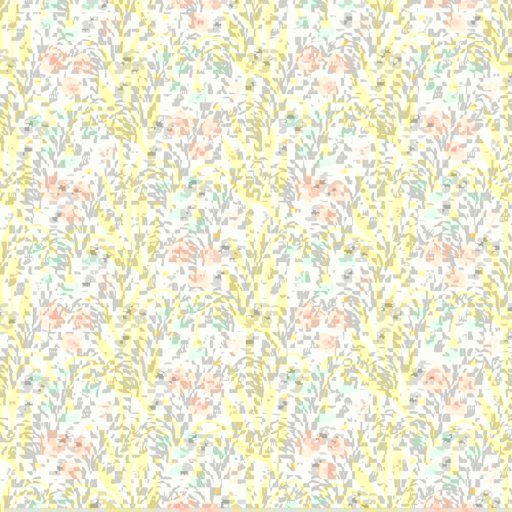 Elevate your interior with this linocut small-scale wallpaper. With modern, clean shapes formed by lino printing the design is distinctive with flower droplets and leaves creating upstanding stripes that span across the wall.