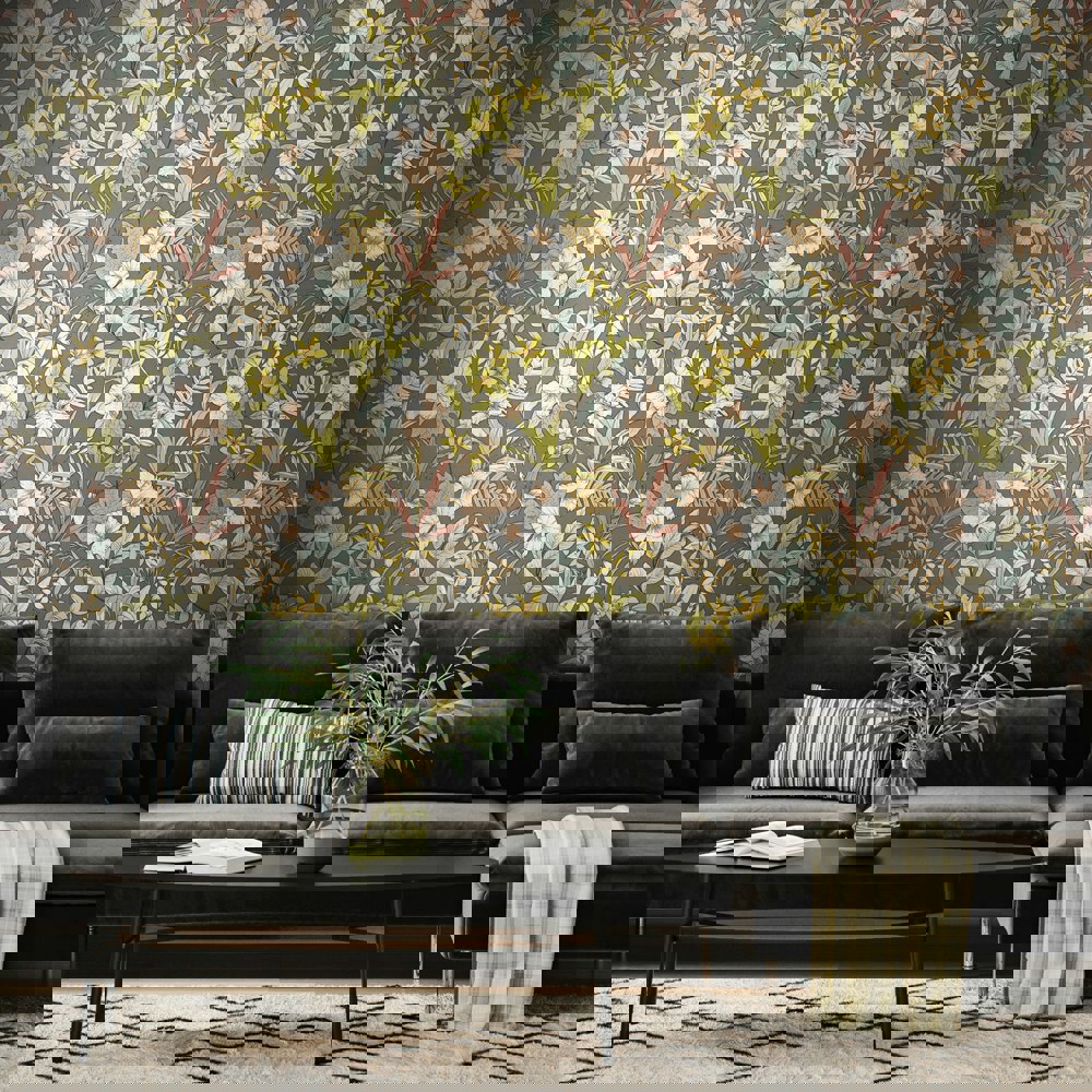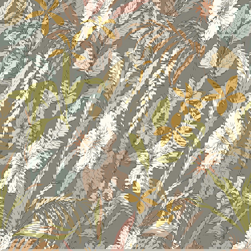 Oasis captures the spirited essence of an exotic paradise with an abundance of lush green leaves and colourful floral illustrations, bringing new life to your space.