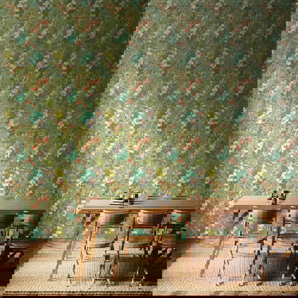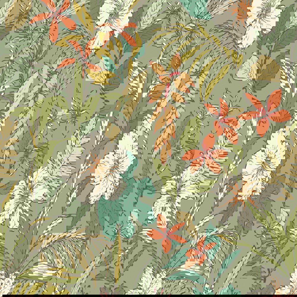 Oasis captures the spirited essence of an exotic paradise with an abundance of lush green leaves and colourful floral illustrations, bringing new life to your space.