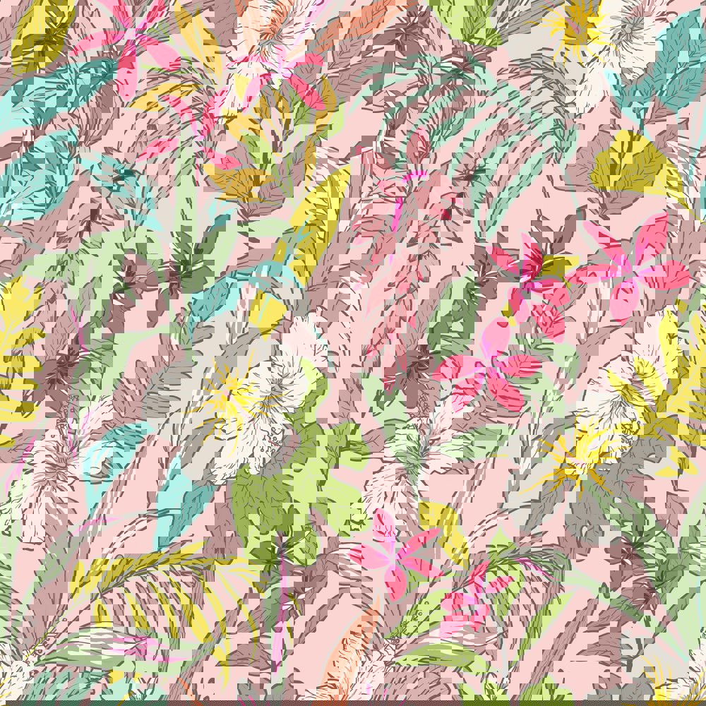 Oasis captures the spirited essence of an exotic paradise with an abundance of lush green leaves and colourful floral illustrations, bringing new life to your space.