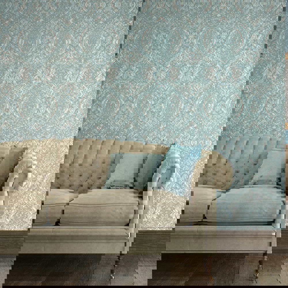 Hoopla Walls Ogee Damask - Duck Egg Blue 10m Wallpaper