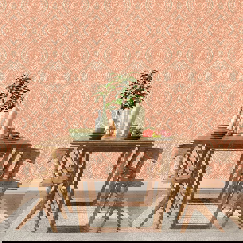 Hoopla Walls Ogee Damask - Orange 10m Wallpaper