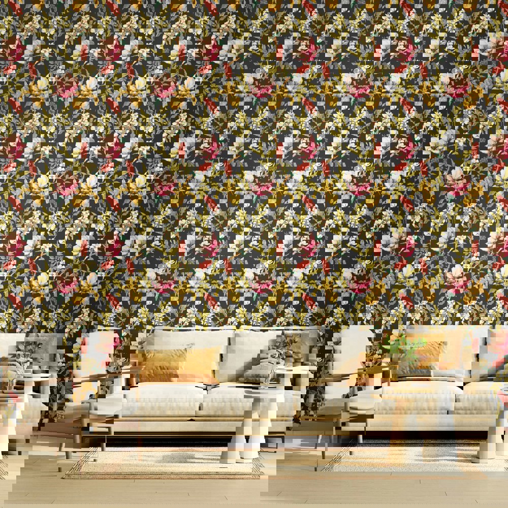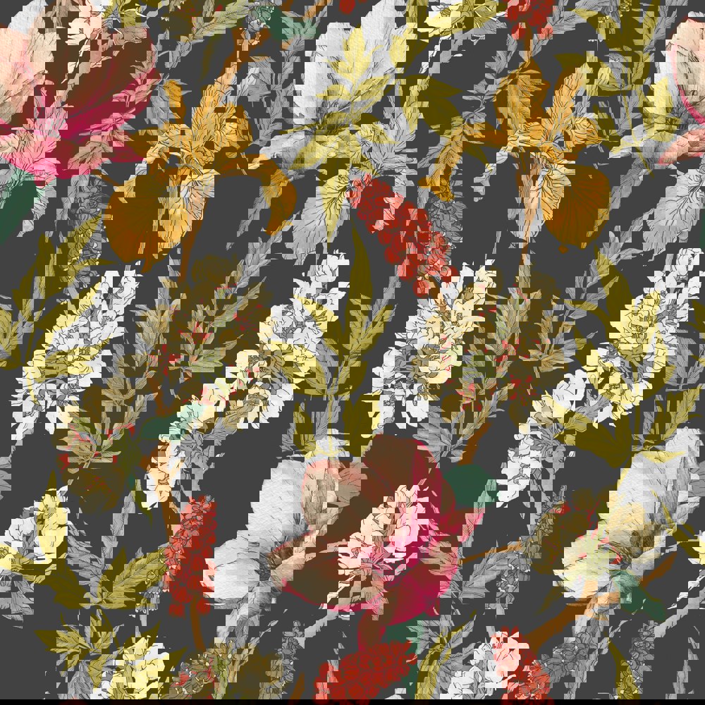 Hoopla Walls Orchid Bloom - Ebony & Raspberry 10m Wallpaper