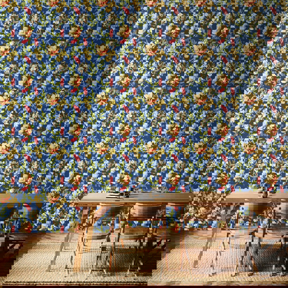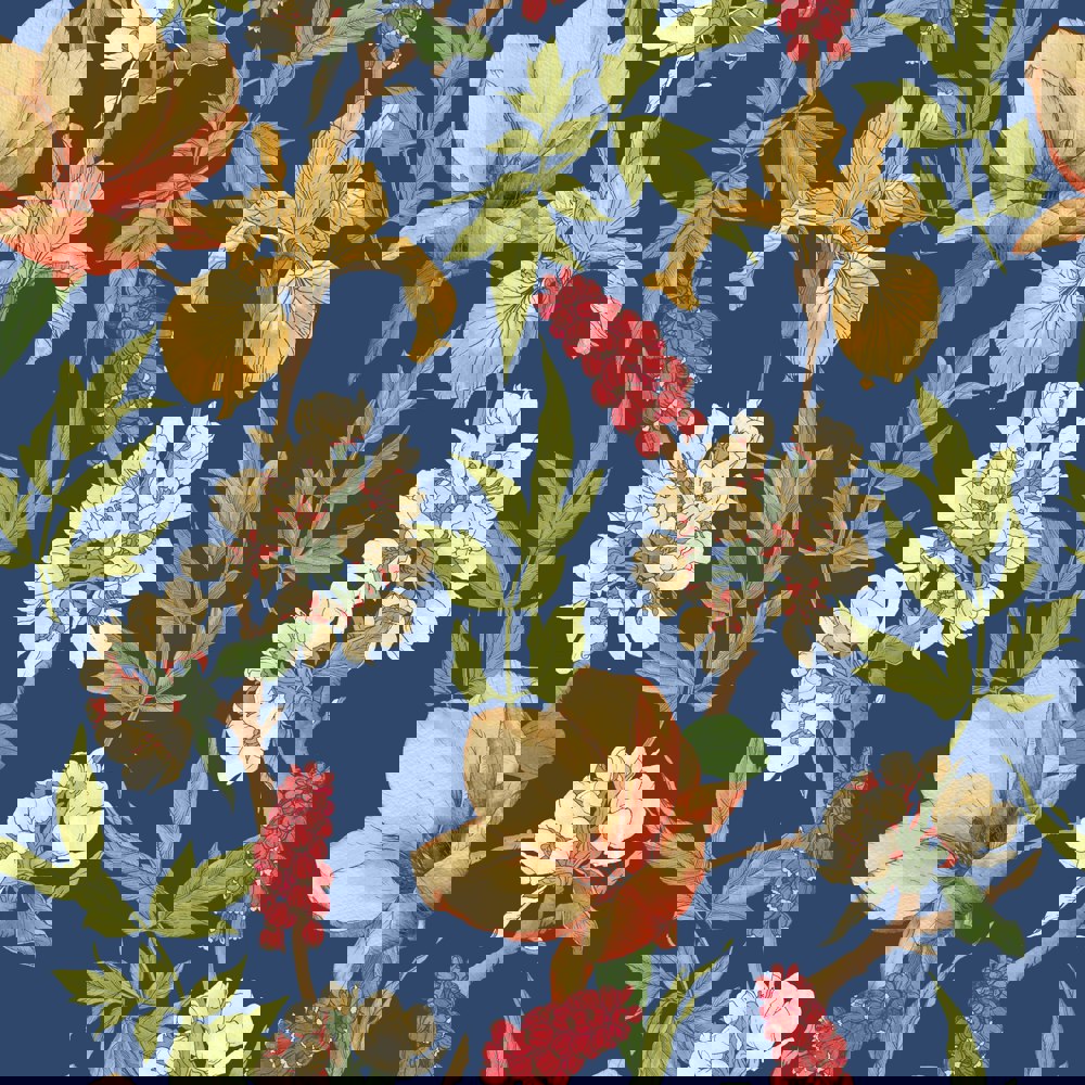 A stunning floral wallpaper featuring orchids, blooms and blossoms cascading around leafy branches. Immerse yourself in its beauty and escape to a tranquil, calming place.