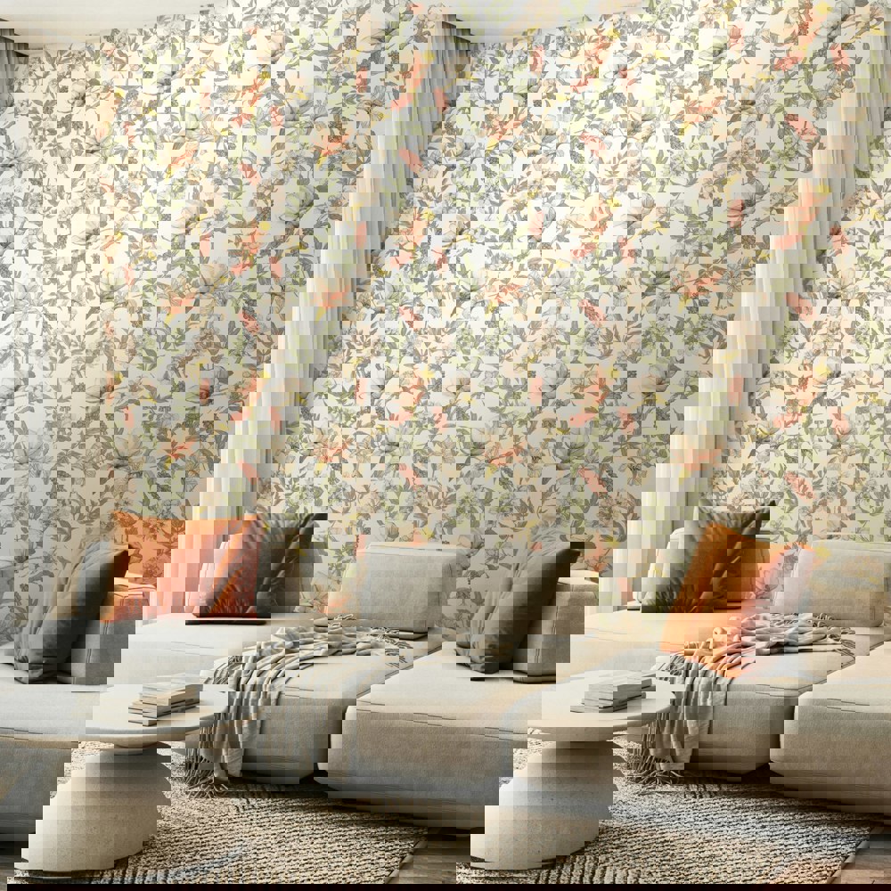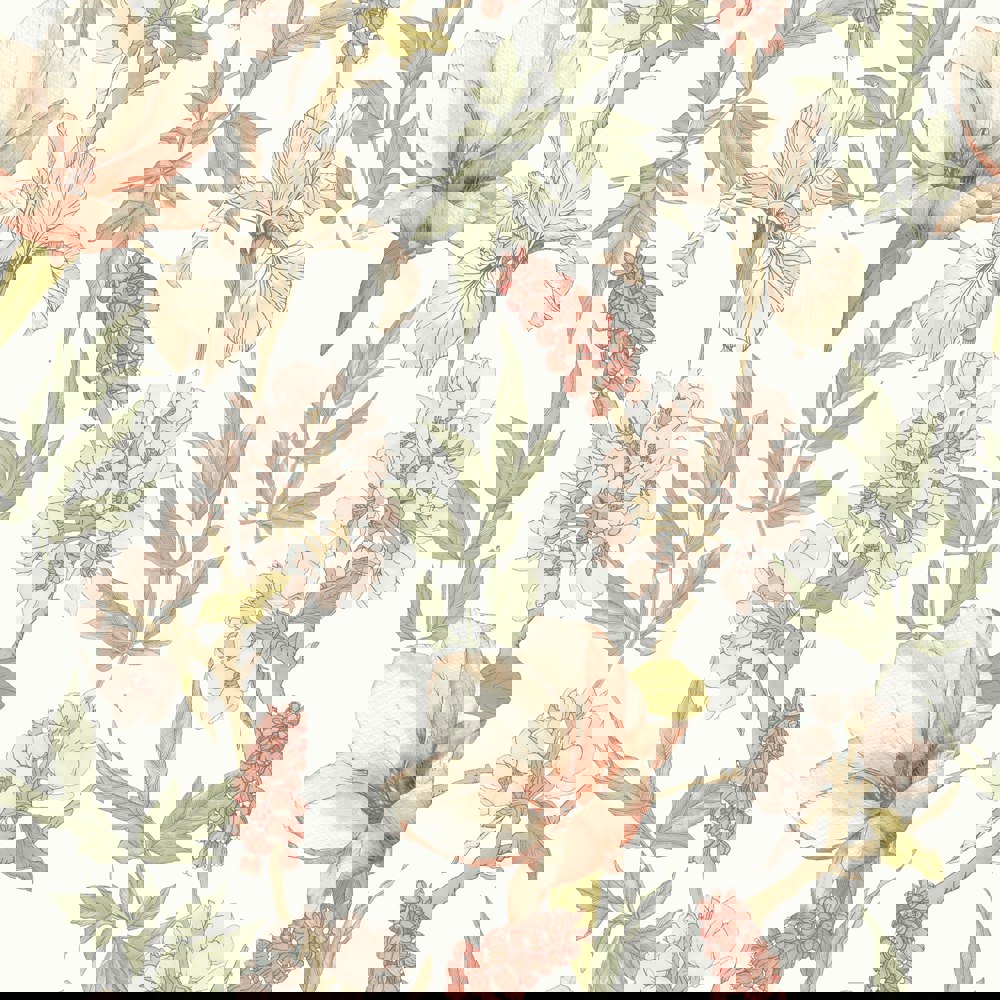 A stunning floral wallpaper featuring orchids, blooms and blossoms cascading around leafy branches. Immerse yourself in its beauty and escape to a tranquil, calming place.