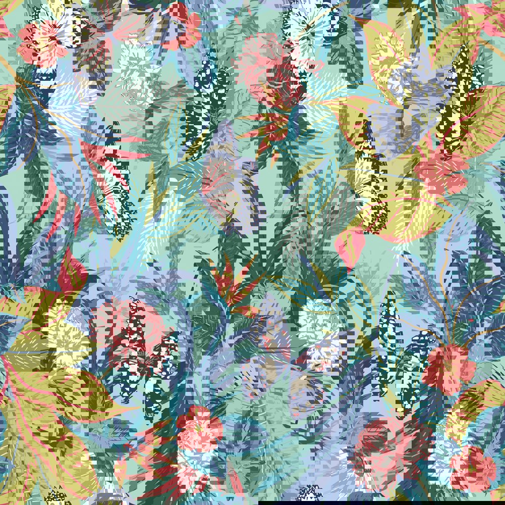 Transform your interior with a decorative oasis of butterflies, palm leaves and blooming flowers. A rich and detailed design that introduces a sense of vibrancy and life to any space.