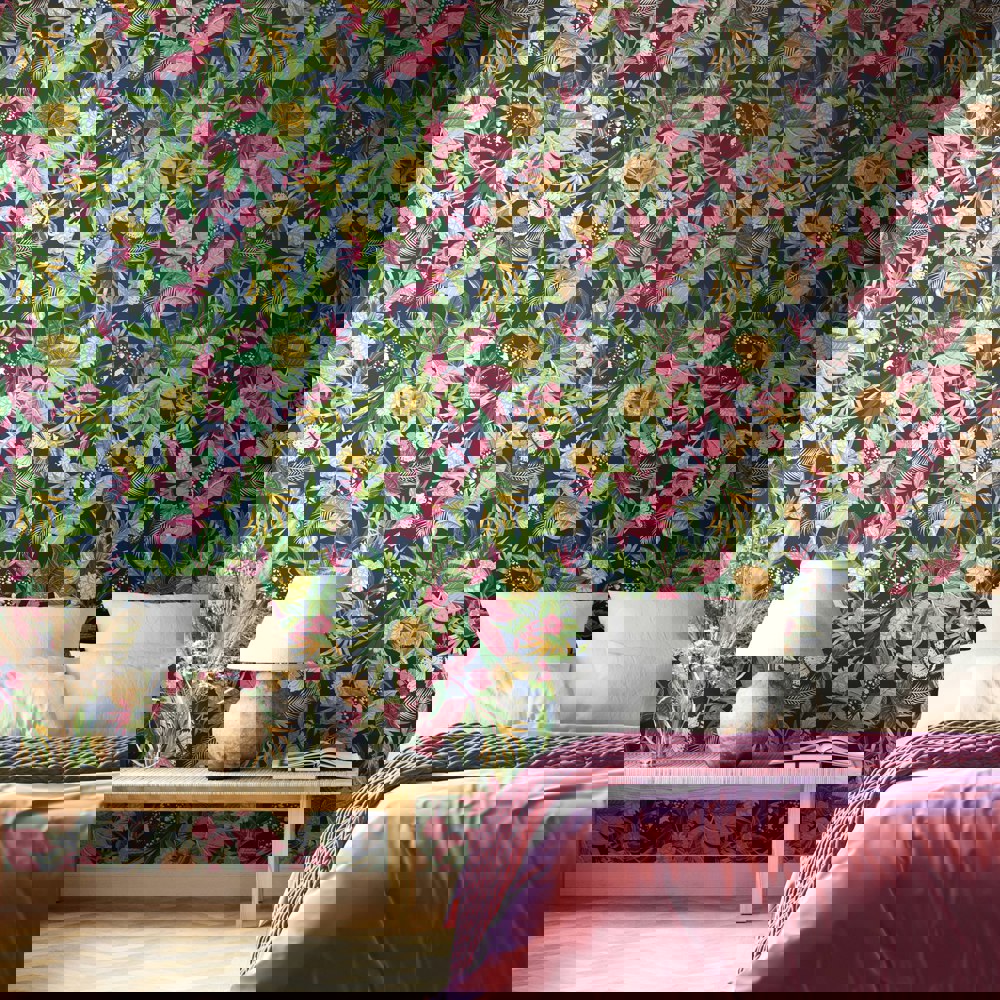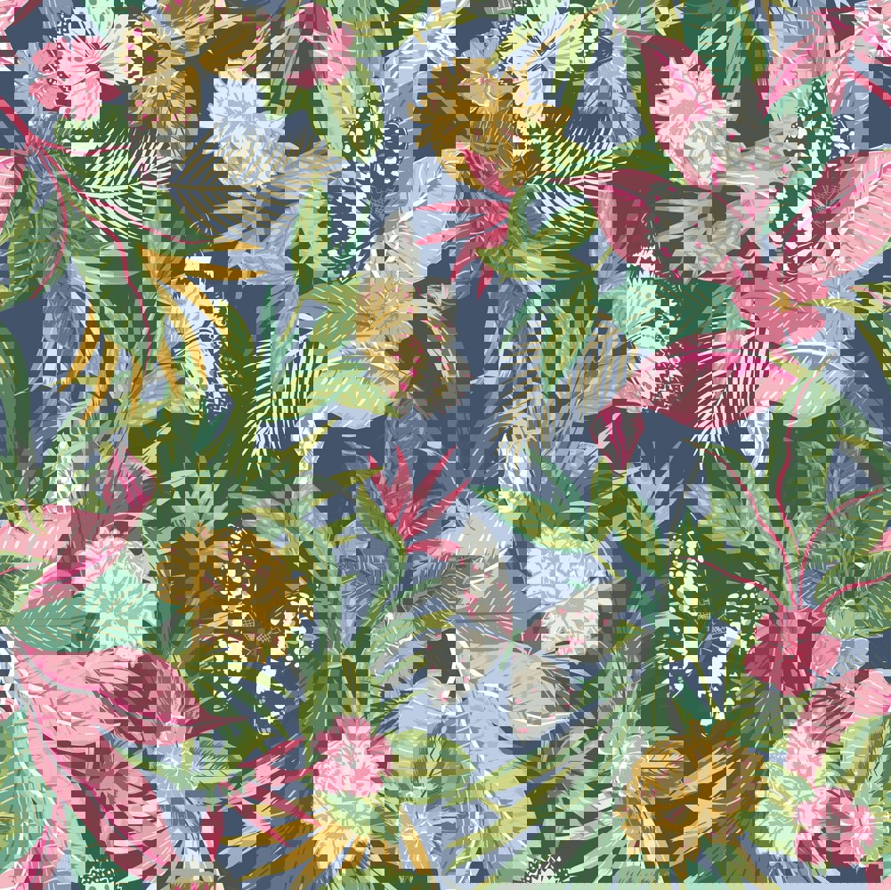 Hoopla Walls Paradise - Indigo & Pink 10m Wallpaper