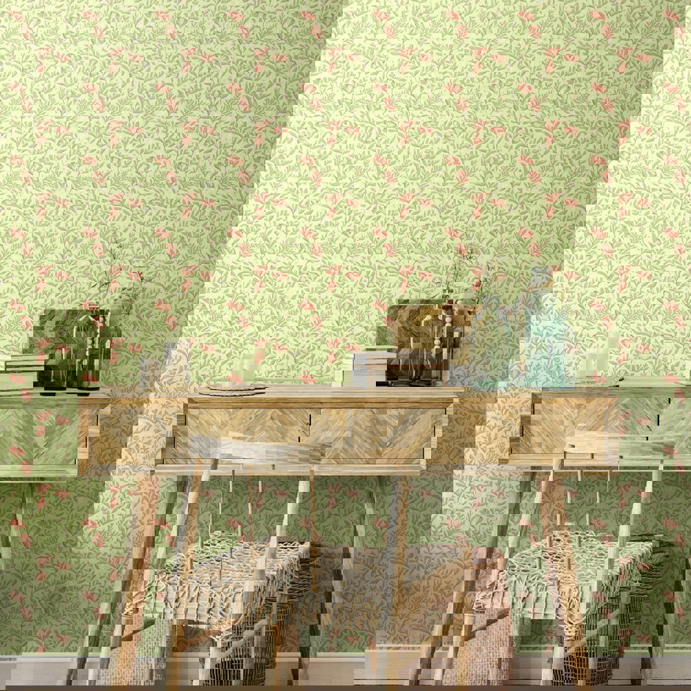 Petite repeating petals and leaves dot around the wall to create a usable small-scale design. Simple, elegant and timeless this design is perfect for adding charm to any space.