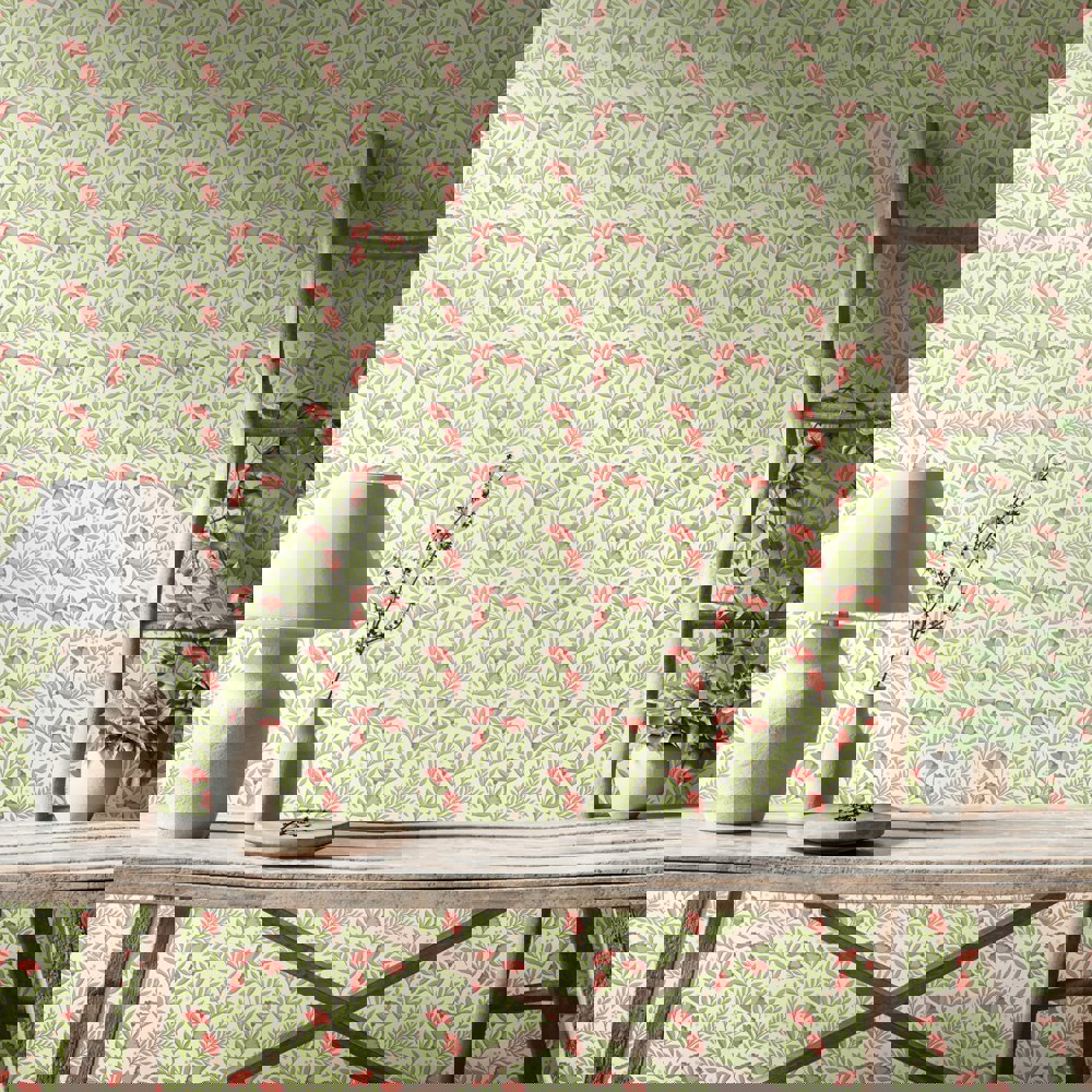 Petite repeating petals and leaves dot around the wall to create a usable small-scale design. Simple, elegant and timeless this design is perfect for adding charm to any space.