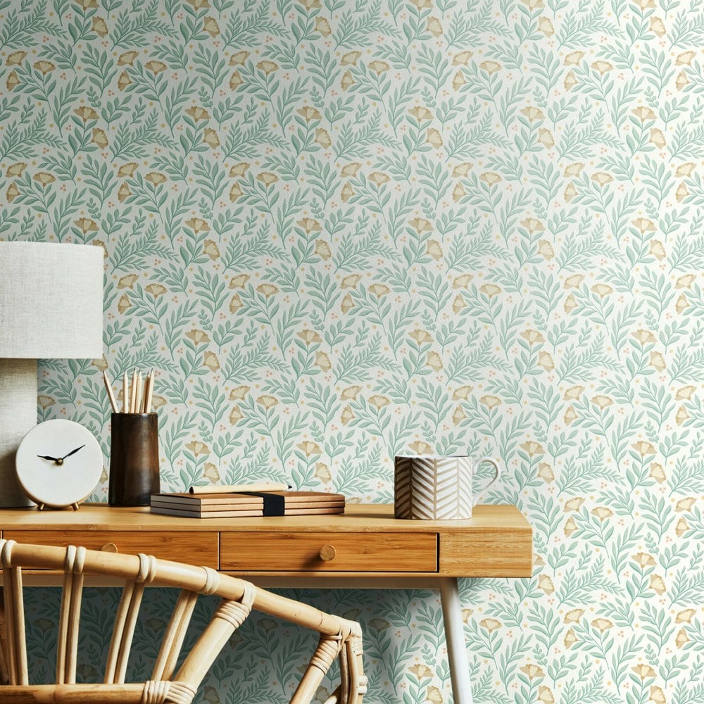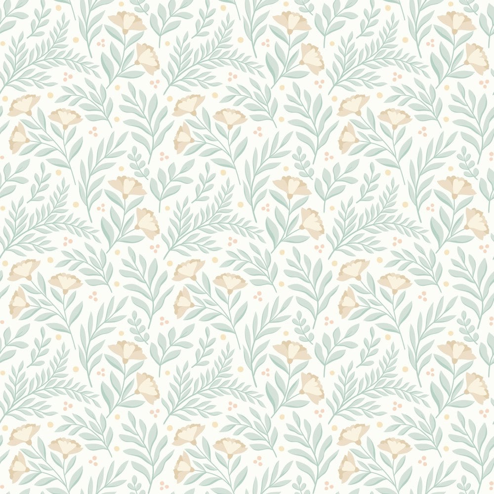 Petite repeating petals and leaves dot around the wall to create a usable small-scale design. Simple, elegant and timeless this design is perfect for adding charm to any space.