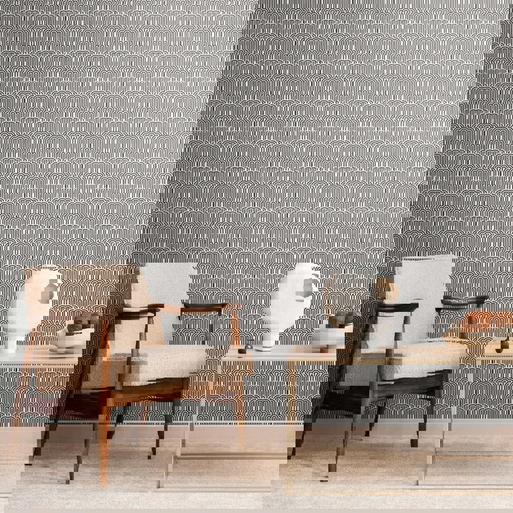 Simple arches repeat across the design in this modern take on an art deco inspired design. The perfect balance of quirky yet contemporary, this design is bound to introduce a joyful lift to any space.