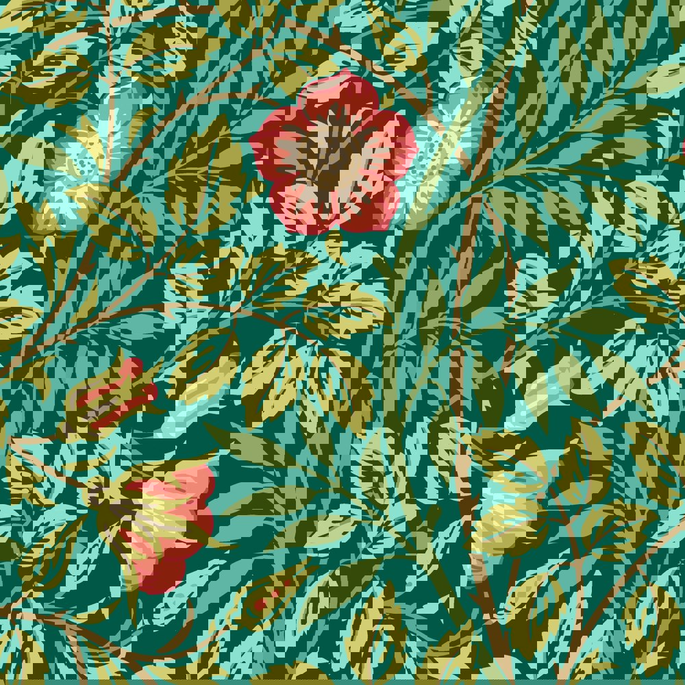 A beautifully illustrated interpretation of roses and thorny foliage. Pretty rose heads and leaves weave together in a rhythmical pattern creating an easy-to-use design perfect for any space.