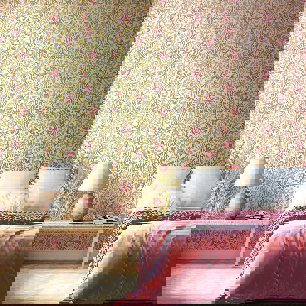 A beautifully illustrated interpretation of roses and thorny foliage. Pretty rose heads and leaves weave together in a rhythmical pattern creating an easy-to-use design perfect for any space.