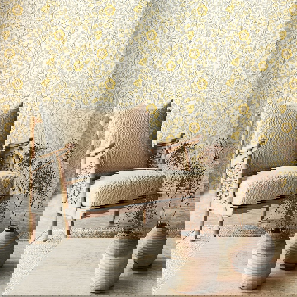 A beautifully illustrated interpretation of roses and thorny foliage. Pretty rose heads and leaves weave together in a rhythmical pattern creating an easy-to-use design perfect for any space.
