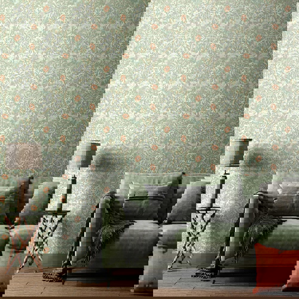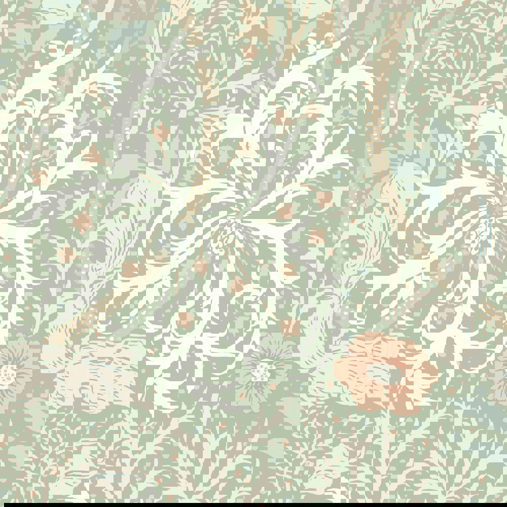 Submerged tangled plants entwine and criss-cross to create graceful movement and waves on the wall. A feast of foliage and seaweed heads, this illustrated design is a beautiful interpretation of John Dearle’s design for William Morris.