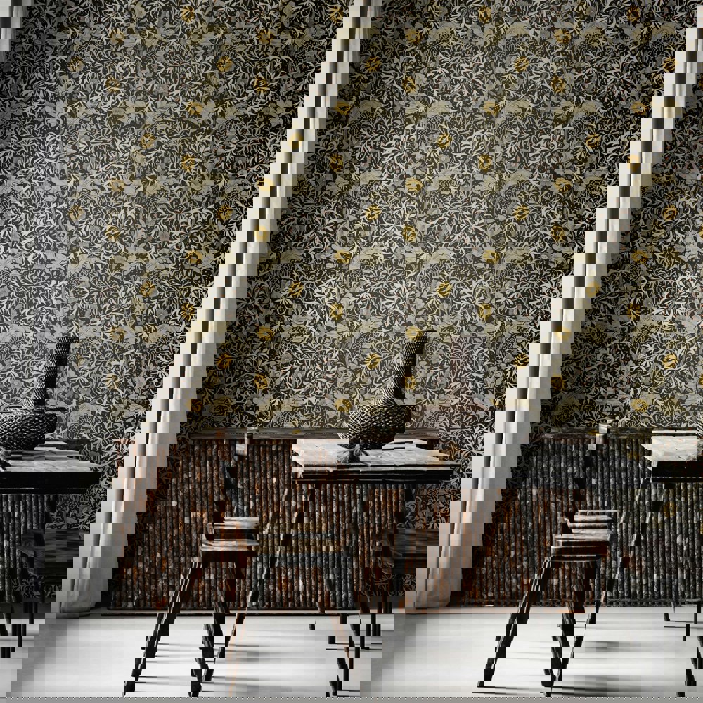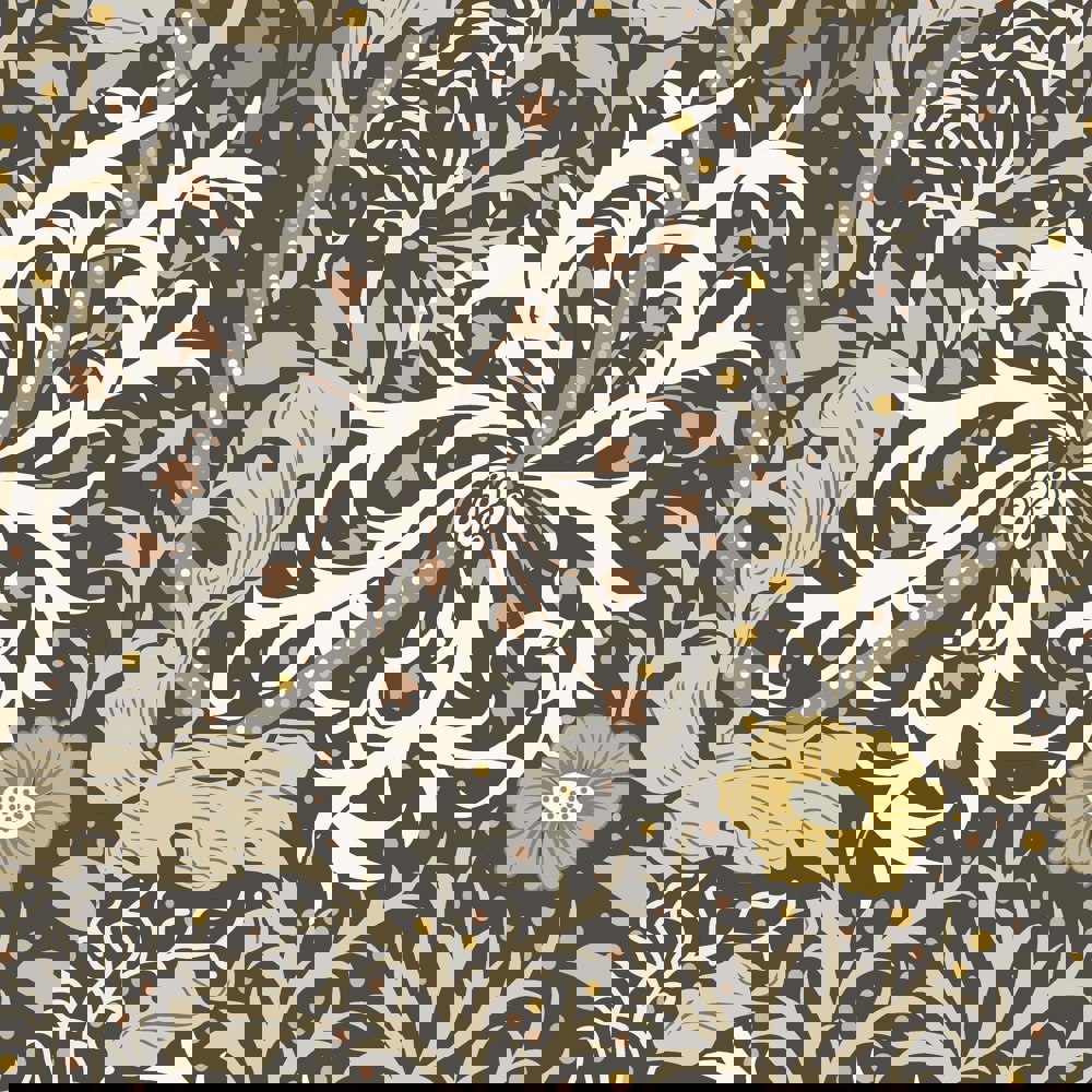 Submerged tangled plants entwine and criss-cross to create graceful movement and waves on the wall. A feast of foliage and seaweed heads, this illustrated design is a beautiful interpretation of John Dearle’s design for William Morris.