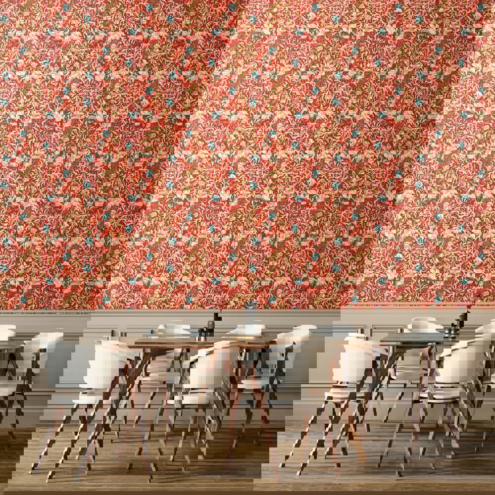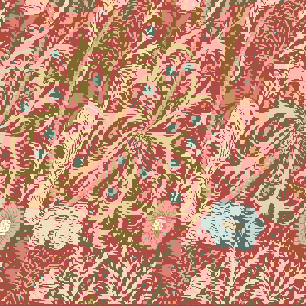 Submerged tangled plants entwine and criss-cross to create graceful movement and waves on the wall. A feast of foliage and seaweed heads, this illustrated design is a beautiful interpretation of John Dearle’s design for William Morris.