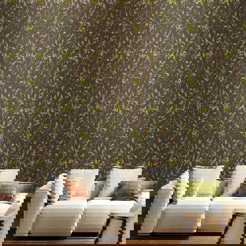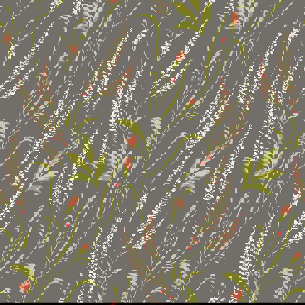 Hoopla Walls Springtime Meadow - Charcoal & Coral 10m Wallpaper