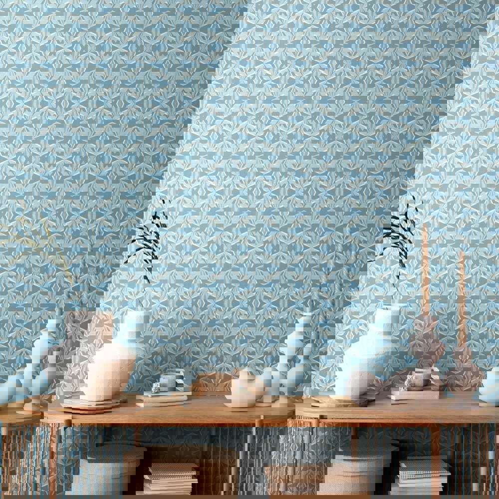 Hoopla Walls Sunray Diamond - Blue 10m Wallpaper