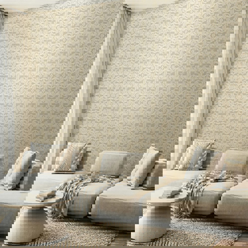 Interlocking repeating diamonds create a mesmerising effect across the wall, replicating the kaleidoscopic effect of sun shining through diamonds. A contemporary optical illusion.