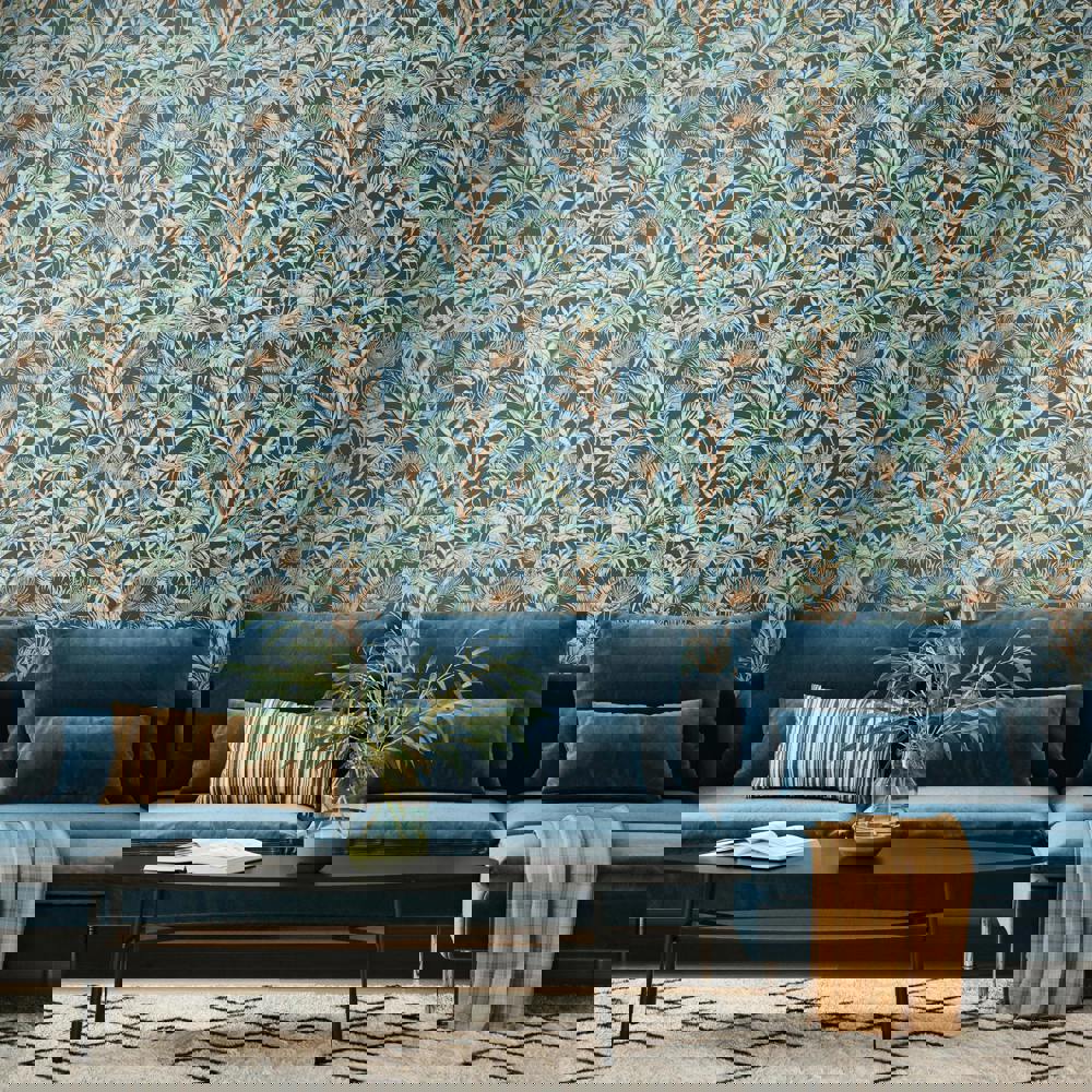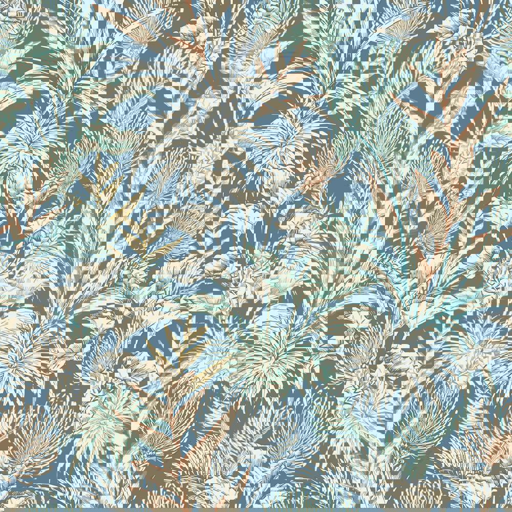 Hoopla Walls Tropical Canopy - Teal & Navy 10m Wallpaper