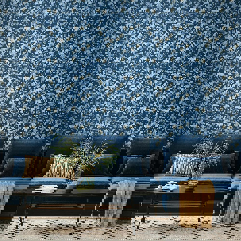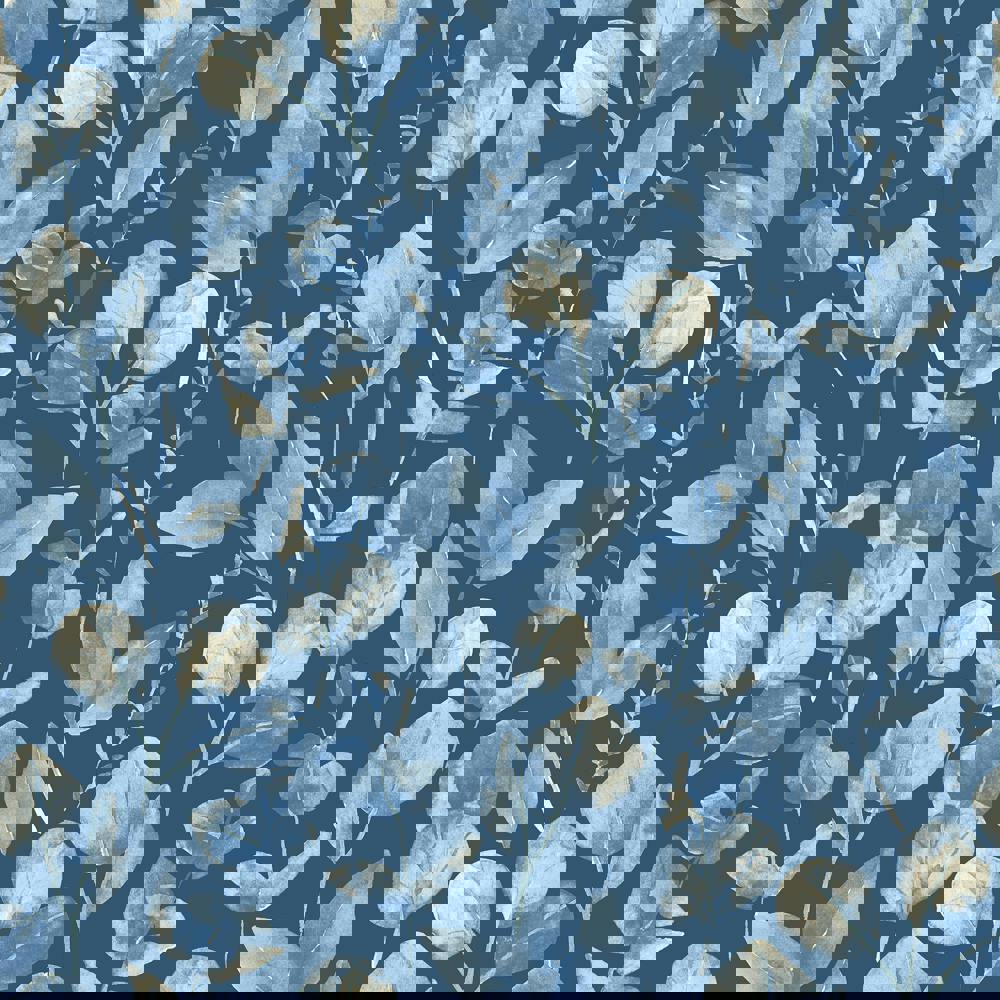 Hoopla Walls Watercolour Leaves - Slate Blue 10m Wallpaper