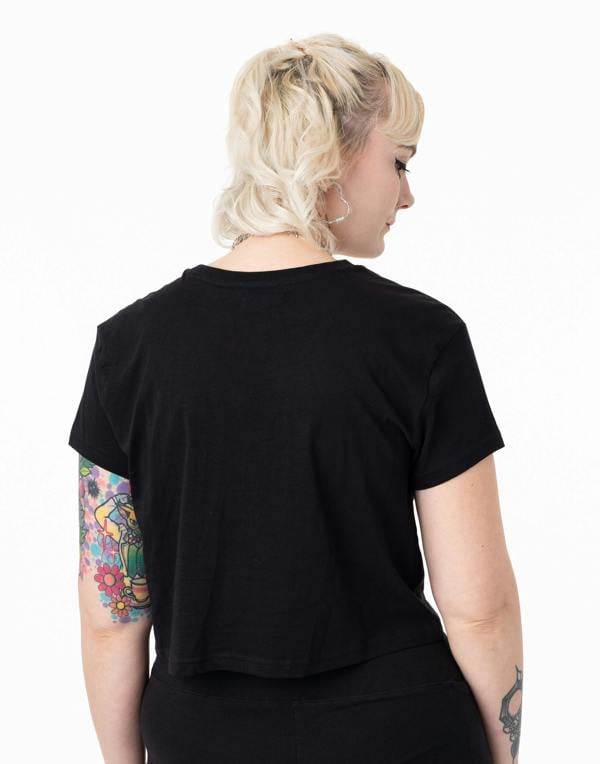 Step into the fiery world of Hot Stuff the Little Devil with our Women's Black Cropped Short Sleeve T-Shirt! This sizzling crop top is a must-have for any fan looking to add a touch of retro summer flair to their wardrobe