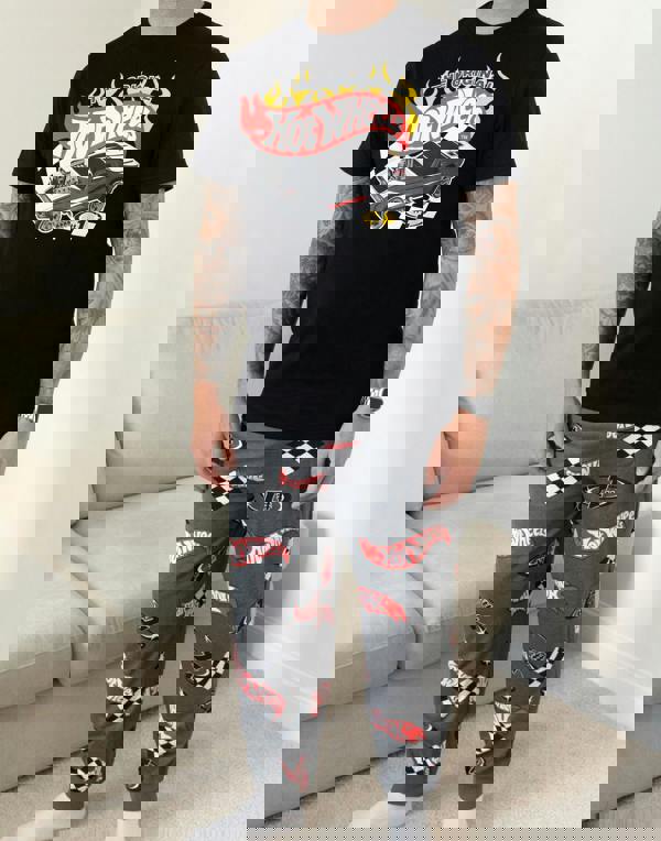 Rev up your relaxation with the Hot Wheels Men's Pyjama Set, perfect for those who take their downtime as seriously as their racing! This adults' set features a striking short-sleeve graphic top showcasing the iconic Hot Wheels flame logo, paired with long-leg PJ bottoms in a sleek black and grey combination that is as cool as your favourite race car