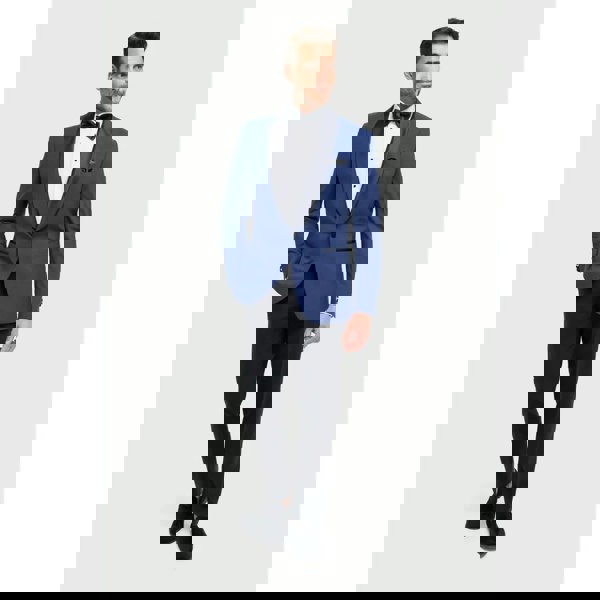 * Striking Color Contrast: The combination of a deep blue jacket with black trousers creates a bold yet sophisticated ensemble suitable for evening wear and special occasions