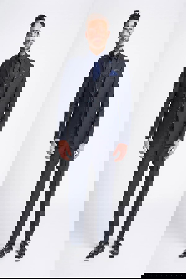 * Sophisticated Dark Navy Color: This suit's rich dark navy hue offers a timeless and versatile look, perfect for any formal occasion or professional setting