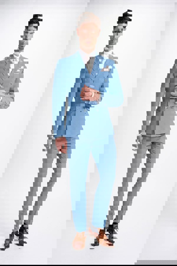 * Sky Blue Color: This suit features a sophisticated sky blue hue that adds a touch of modern style to any wardrobe, perfect for both formal and semi-formal occasions