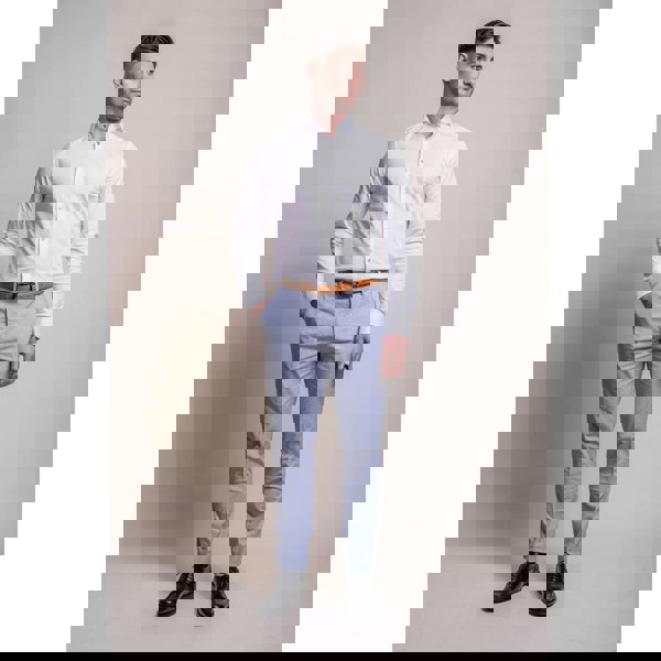 * Fabric Composition: These light blue trousers are crafted from a blend of materials, including 70% Polyester, 27% Linen, and 3% Spandex. This combination offers a comfortable and flexible fit while maintaining a stylish appearance.