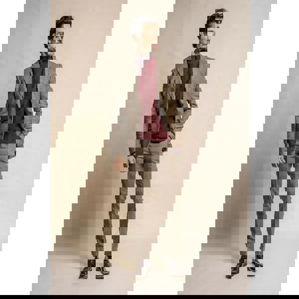 * Tweed Herringbone Sophistication: The Gaston olive blazer for men features a distinguished tweed herringbone pattern that adds a touch of refined sophistication and texture to your ensemble.
