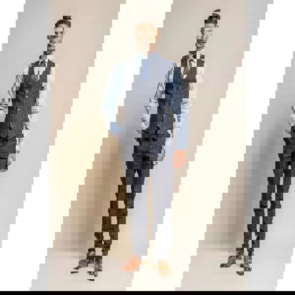 * Timeless Navy Blue: The classic navy blue color of this waistcoat serves as a versatile backdrop for the pinstripe pattern, making it suitable for various formal and semi-formal occasions.
