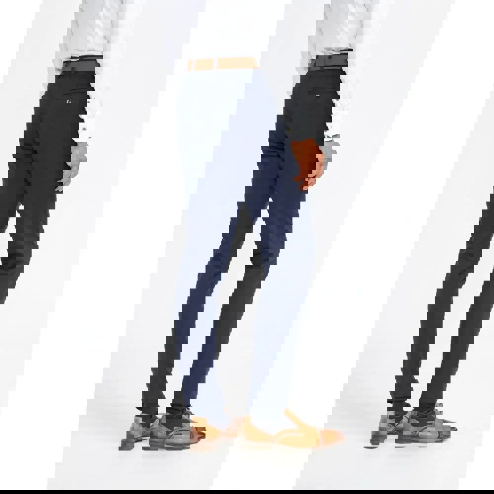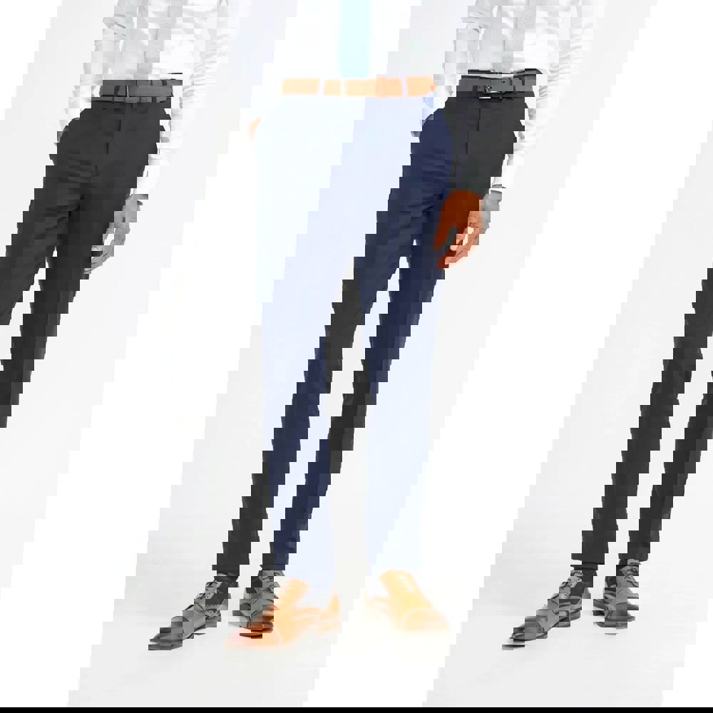 * Classic Tailored Fit: These navy blue suit trousers offer a tailored cut that provides a clean, structured silhouette suitable for professional and formal settings