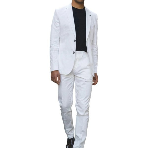 * Classic Italian tailored fit: This suit is cut to a classic Italian silhouette, with a slim fit through the chest and waist, and a slightly wider leg. This makes it a versatile option that can be dressed up or down, depending on the occasion.