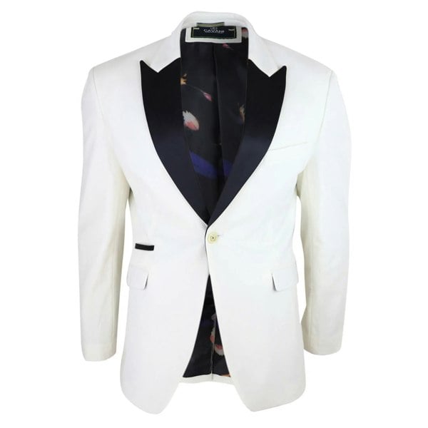 * Soft Cream Velvet With Contrasting Black Satin Lapels & Matching Buttons