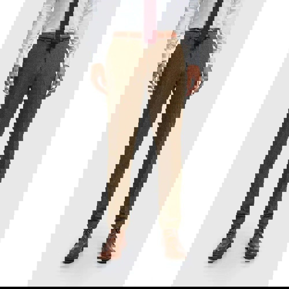 * Herringbone Pattern: Crafted with a refined brown wool-blend fabric, these trousers feature a distinctive herringbone weave that adds depth, character, and texture to your wardrobe