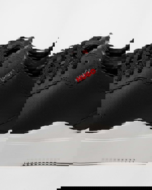 Modern low-top cupsole trainers in soft leather by HUGO, including signature-red branding on the quarter.