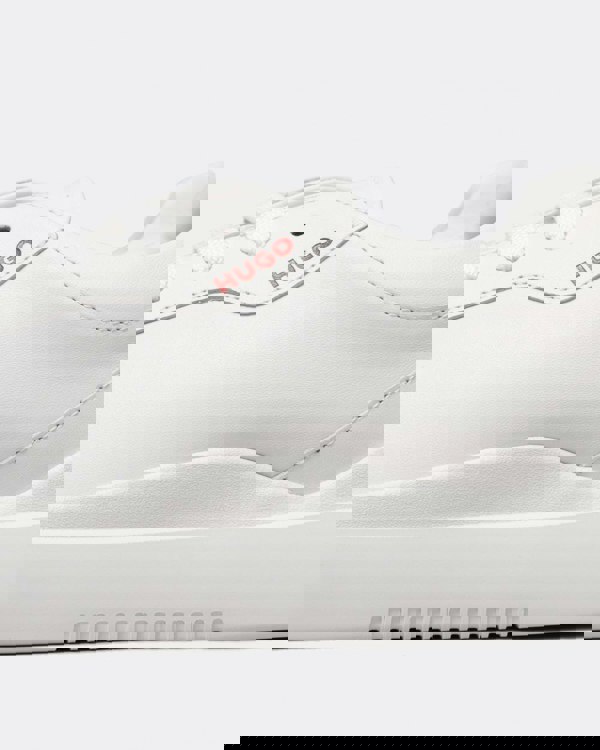 Modern low-top cupsole trainers in soft leather by HUGO, including signature-red branding on the quarter.