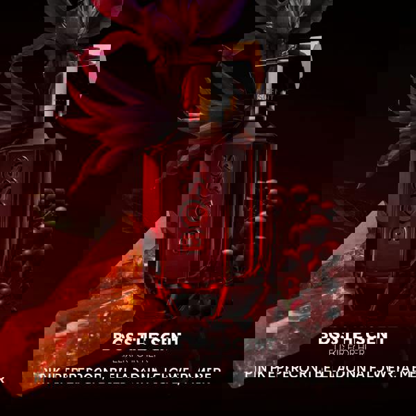 The composition opens with a bright lift of pink peppercorn, bringing a fresh, spicy sparkle before the darker intrigue of belladonna flower adds a mysterious floral depth. As it settles, warm amber builds in the base, creating a vibrant, lingering finish that leaves a captivating trail. Presented in a striking deep-red lacquered flacon with the BOSS logo and a warm-gold, Double-B monogrammed cap, it makes a confident statement on the dressing table and in the moment.