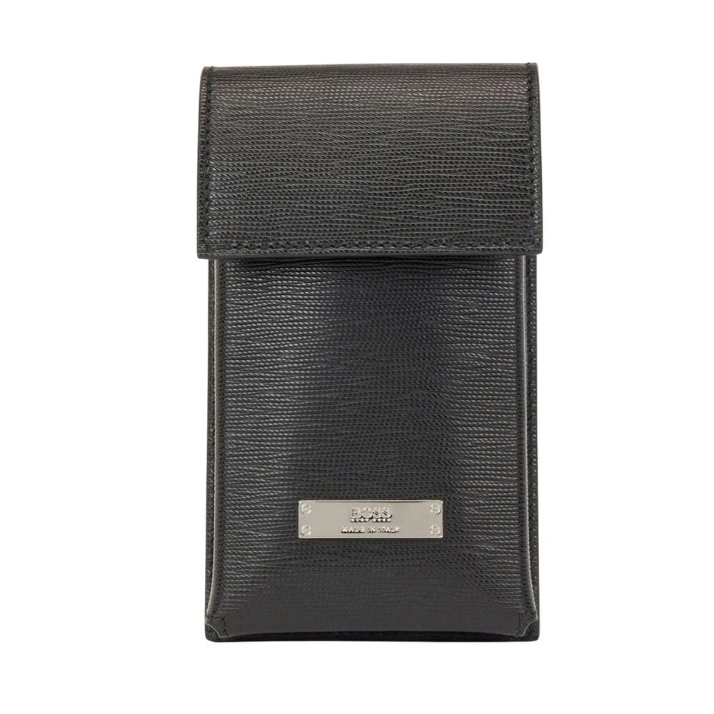 The BOSS GalleryA Italian Leather Neck Pouch in black is a compact accessory designed to keep everyday essentials close to hand. Crafted from leather with a shiny finish, it features a textured, embossed design with a metallic logo detail for a refined look.